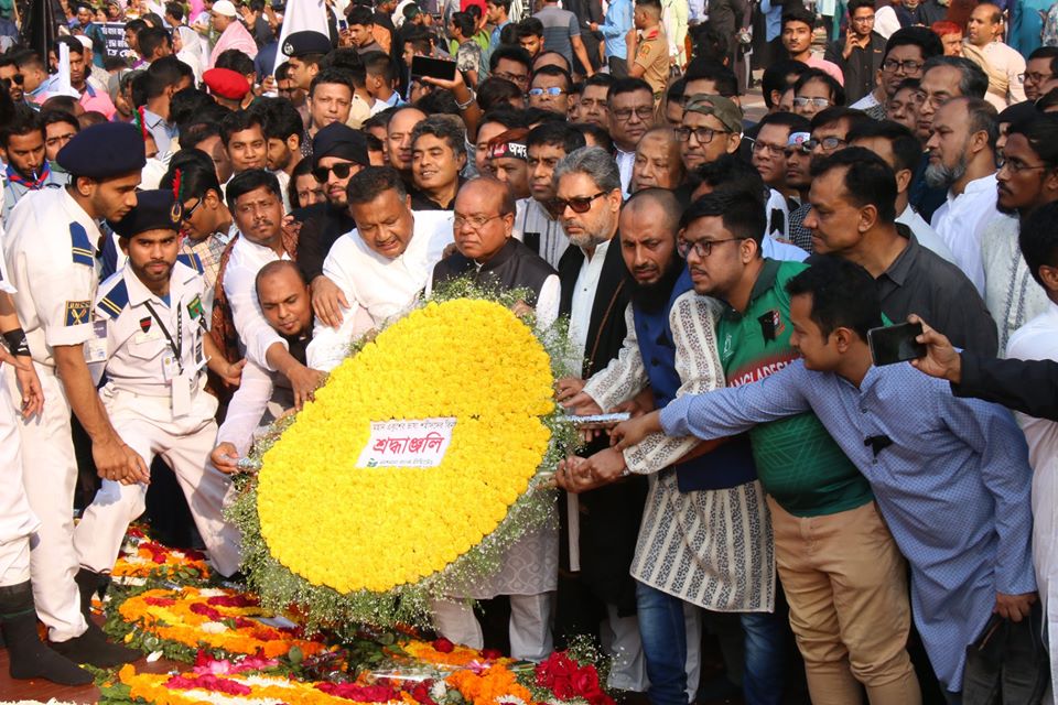 NBL Paid Homage to the Martyrs of Language Movement. After the Provat Ferry, the MD of the Bank C.M. Ahmed, AMD M.A. Wadud, DMDs Syed Rois Uddin & Ekramul Haque, other Head Office Officials, Managers of Dhaka City Branches & a number of other officials paid tribute to the Shaheed Minar.