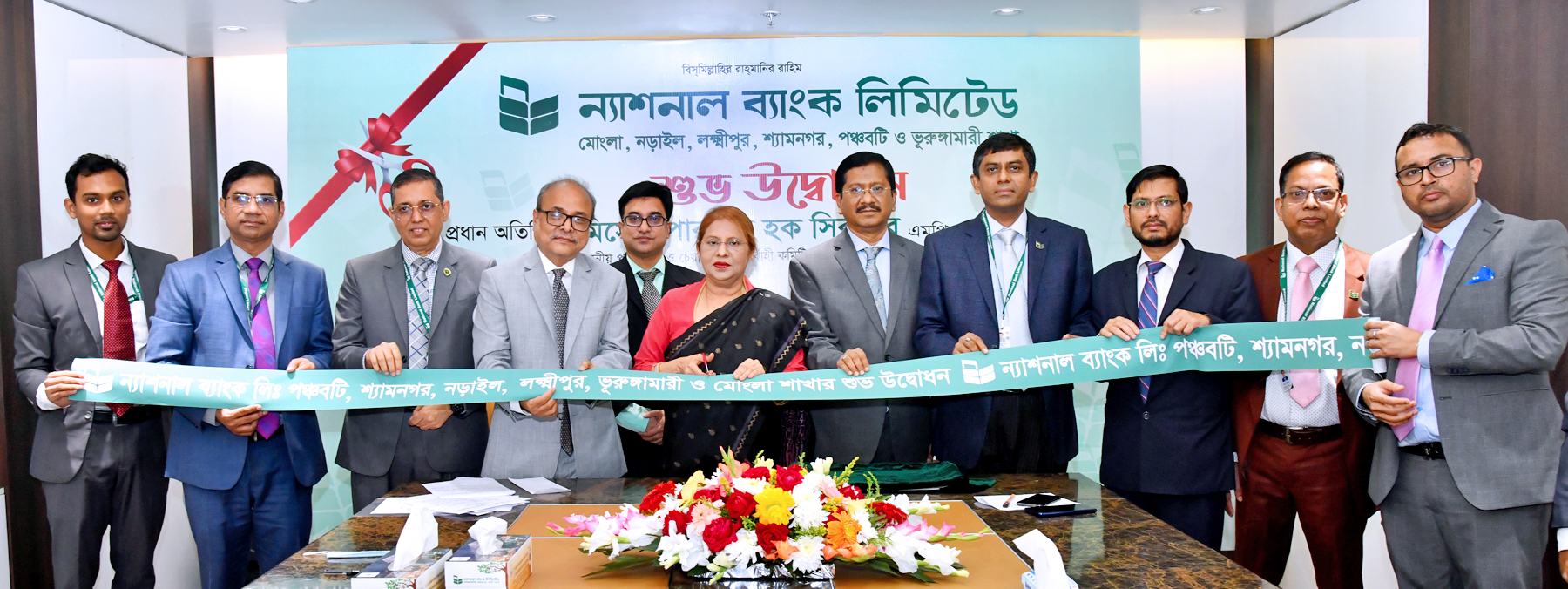 সকল ধরনের আধুনিক ব্যাংকিং সুযোগ সুবিধা নিয়ে বাগেরহাটের মোংলাতে ২১৪তম, নড়াইলে ২১৫তম, লক্ষীপুরে ২১৬তম, সাতক্ষীরার শ্যামনগরে ২১৭তম, নারায়ণগঞ্জের পঞ্চবটিতে ২১৮তম ও কুড়িগ্রামের ভূরুঙ্গামারীতে ২১৯তম শাখার কার্যক্রম শুরু করেছে ন্যাশনাল ব্যাংক লিমিটেড। বুধবার (২৯ ডিসেম্বর, ২০২১) ডিজিটাল প্ল্যাটফর্ম ব্যবহার করে ভিডিও কনফারেন্সের মাধ্যমে প্রধান অতিথি হিসেবে একই সাথে ছয়টি শাখার উদ্বোধন করেন ব্যাংকের পরিচালক ও নির্বাহী কমিটির চেয়ারপার্সন মিসেস পারভীন হক সিকদার, এমপি। অনুষ্ঠানে গ্রাহকদের আধুনিক এবং গুণগত ব্যাংকিং সেবা প্রদানের প্রতিশ্রুতি প্রদান করে, ব্যাংকের পরিচালনা পর্ষদের পক্ষ থেকে উপস্থিত সবাইকে ধন্যবাদ জ্ঞাপন করেন ব্যাংকের পরিচালক ও নির্বাহী কমিটির চেয়ারপার্সন। এসময় তিনি হাজার বছরের শ্রেষ্ঠ বাঙ্গালী জাতির জনক বঙ্গবন্ধু শেখ মুজিবুর রহমানসহ সকল বীর শহীদদের শ্রদ্ধাভরে স্মরণ করেন। এছাড়া বিশেষভাবে স্মরণ করেন ব্যাংকের প্রয়াত চেয়ারম্যান ও উদ্যোক্তা পরিচালক এবং মহান মুক্তিযুদ্ধের অন্যতম সংগঠক তাঁর বাবা বীর মুক্তিযোদ্ধা জয়নুল হক সিকদারকে। অনুষ্ঠানে উদ্বোধনকৃত নতুন শাখা ব্যবস্থাপকদের সাথে ভিডিও কনফারেন্সে যুক্ত ছিলেন ব্যাংকের উদ্যোক্তা পরিচালক জনাব মোয়াজ্জেম হোসেন, পরিচালক জনাব মোঃ নাইমুজ্জামান ভূইয়া মুক্তা এবং পরিচালক লে. জেনারেল মো. শফিকুর রহমান (অবসরপ্রাপ্ত)। অনুষ্ঠানে আরও উপস্থিত ছিলেন ব্যাংকের ব্যবস্থাপনা পরিচালক ও প্রধান নির্বাহী কর্মকর্তা মোঃ মেহমুদ হোসেন ও ব্যাংকের উর্ধ্বতন কর্মকর্তা, কর্মচারীবৃন্দ। এছাড়া উদ্বোধনী অনুষ্ঠানের সময় শাখাসমূহে স্থানীয় বিশিষ্ট ব্যবসায়ী, মুক্তিযোদ্ধা, সমাজকর্মী ও বিভিন্ন শ্রেণী-পেশার মানুষ উপস্থিত ছিলেন। অনুষ্ঠানের শেষ পর্যায়ে দেশ ও জাতির কল্যাণ কামনা করে বিশেষ দোয়া ও মোনাজাত করা হয়।