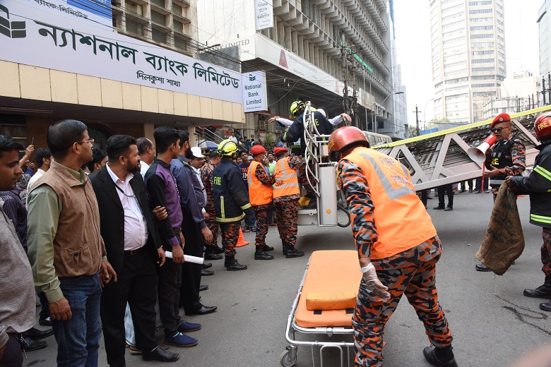 At the initiative of National Bank’s Honorable Chairman, a veteran freedom fighter & a renowned organizer of the great war of liberation, Mr. Zainul Haque Sikder, the bank holds a fire rescue drill trial today. The program was organized by the System & Operation Division of NBL & Fire Service & Civil Defense and was supervised by the Head of S&OD, NBL, Major Sk. Md. Yusuf Reza (Retd). The program was held to make the officials aware of the dos & donts during a fire accident, how to prevent those & how to rescue the victims. Managing Director of NBL Choudhury Moshtaq Ahmed, Additional Managing Directors Wasif Ali Khan, M.A. Wadud & ASM Bulbul and all the officials of NBL Head Office attended the program.