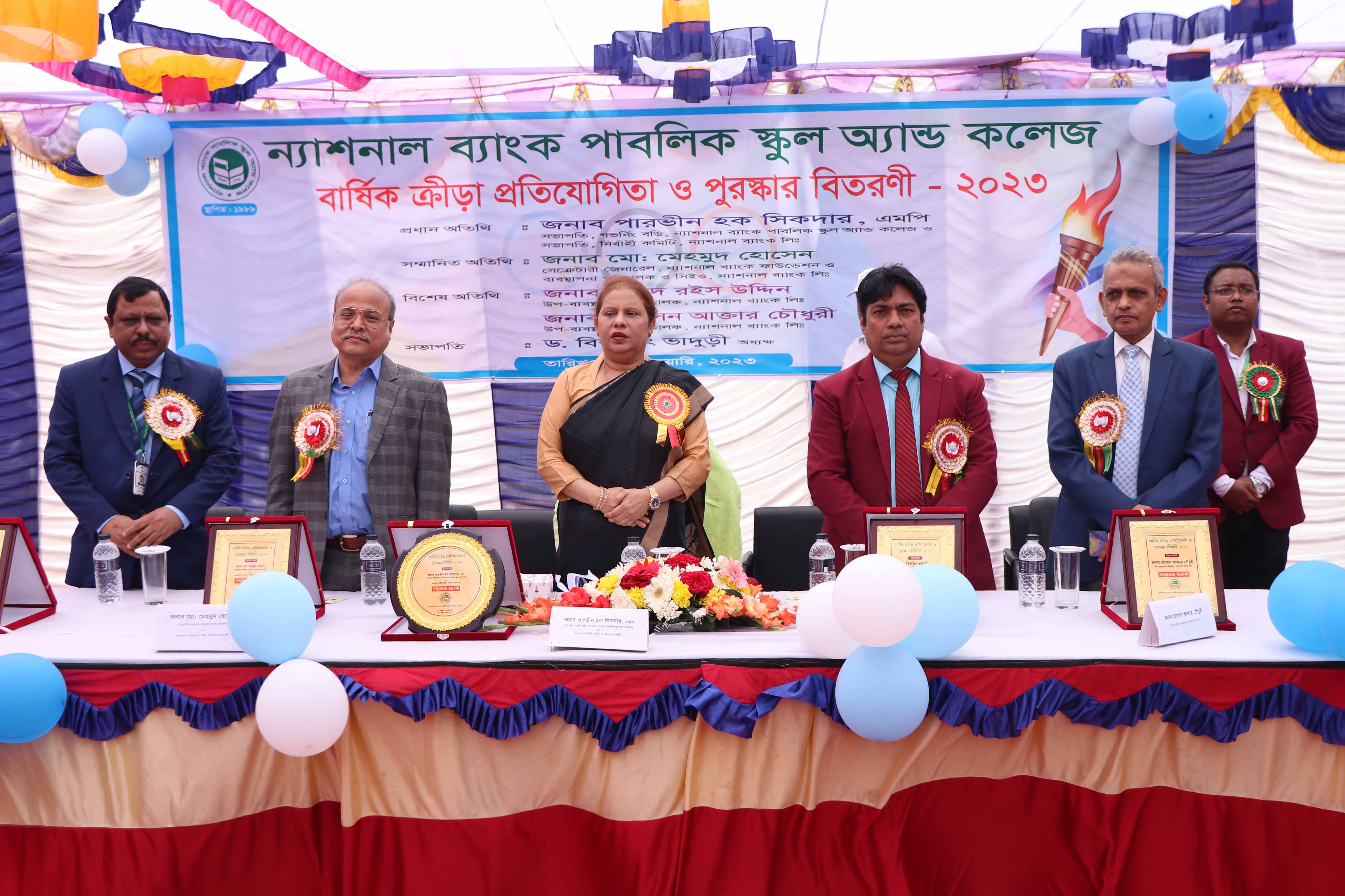 Annual Sports Competition and Prize Distribution Ceremony of National Bank Public Schools & College held on February 20, 2023. Parveen Haque Sikder, MP, President of Governing Body, National Bank Public School & College and Chairperson of the Executive Committee, National Bank Limited graced the occasion as chief guest. Hossain Akhtar Chowdhury, Deputy Managing Director, National Bank Limited also attended the event as a special guest. The event was presided over by the Principal of National Bank Public School & College Dr. Bishwajit Bhaduri. On this occasion, Chief Guest Parveen Haque Sikder, MP, distributed prizes among the winners of the competition. During her speech, she said that the education sector is one of the highest priorities of the present government. The country's education system is being modernized under the direct supervision of Prime Minister Sheikh Hasina. She also urged the students of National Bank Public School & College to excel in sports besides regular studies.