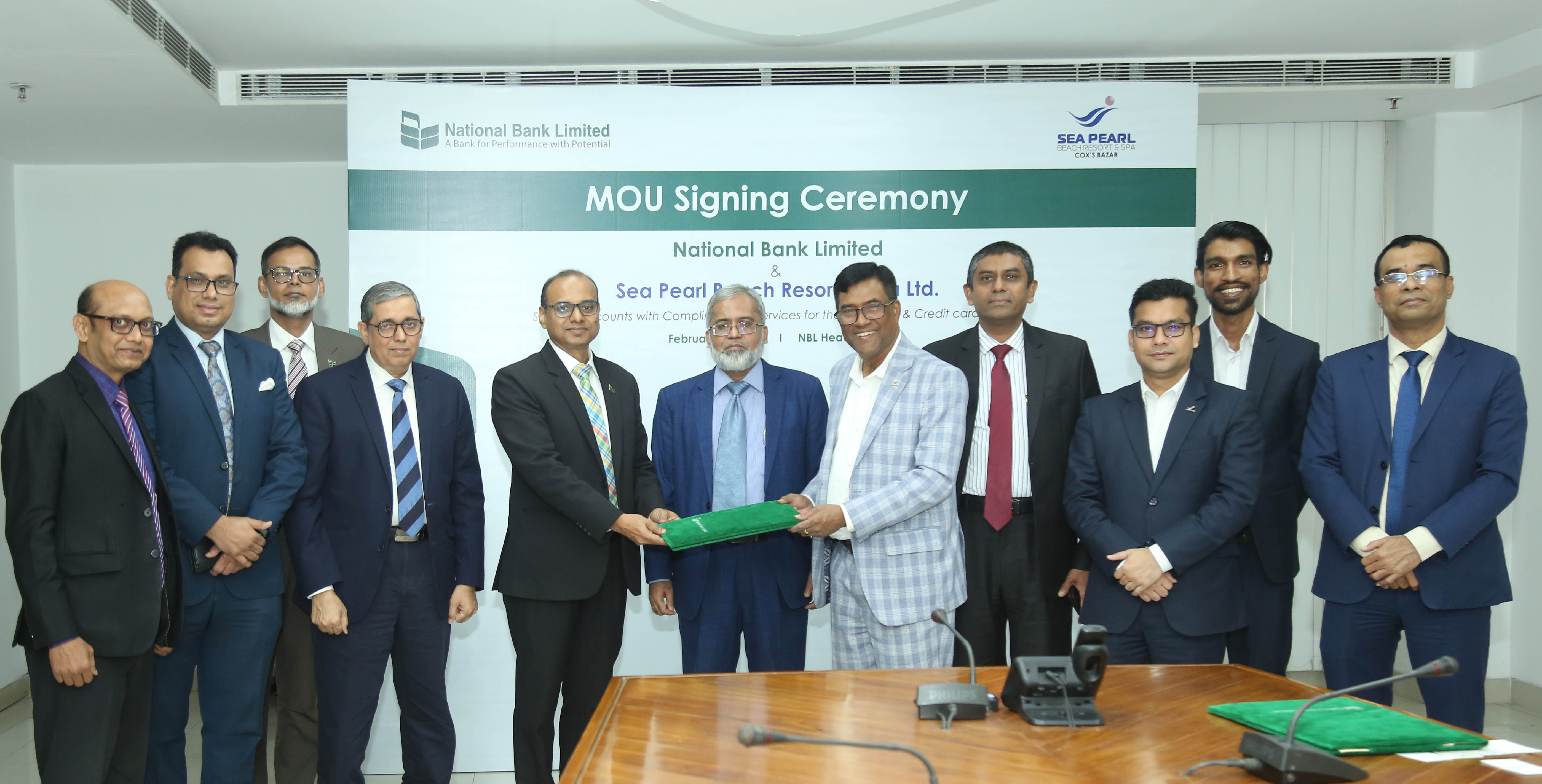On February 18, 2024, an MoU was inked between National Bank Limited and Sea Pearl Beach Resorts & Spa Limited at the Head Office of National Bank Limited. The agreement was signed in the presence of Md. Touhidul Alam Khan, Managing Director & CEO of National Bank Limited. Mohammad Rezwanul Haque, VP & Head of Card Division at National Bank Limited, and M.A. Awal, Director of Sales & Marketing at Sea Pearl Beach Resorts & Spa Limited, signed the agreement documents on behalf of their respective organizations. As per this arrangement, all credit and debit cardholders of National Bank Limited will enjoy up to 50% discounts on the existing rack rates. Additionally, cardholders will benefit from other complimentary services. Present at the signing were Deputy Managing Directors, Syed Rois Uddin, Sheikh Akhter Uddin Ahmed, Imran Ahmed, and senior management personnel including AKM Salah Uddin Khan, EVP & Head of Marketing Division. Representatives from Sea Pearl Beach Resorts & Spa Limited including Shahan Ali Khan, Group Marketing Manager were also in attendance.