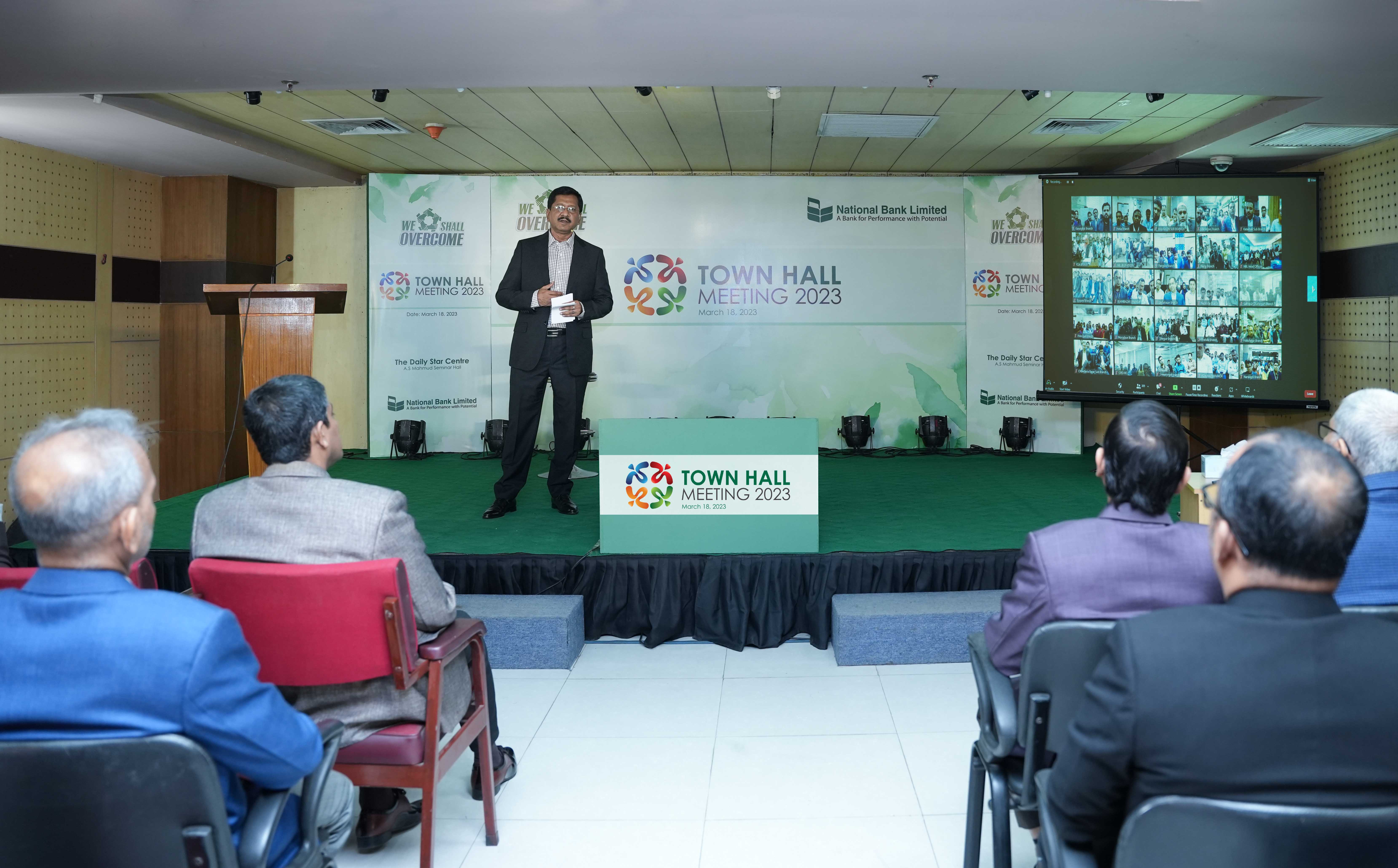 Deputy Managing Directors of the Bank Syed Rois Uddin and Hossain Akhtar Chowdhury, among others, were present at a conference center in Dhaka along with the officers of various divisions of the bank's head office. Apart from this, the officers and employees of every branch and sub-branch of the National Bank in the country and abroad were connected virtually in this town hall meeting.