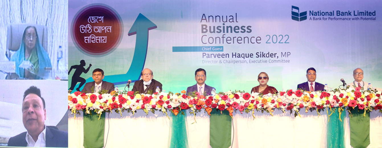 ন্যাশনাল ব্যাংক লিমিটেড-এর বাৎসরিক ব্যবসায়িক সম্মেলন শনিবার, ১৫ জানুয়ারি, ২০২২ ঢাকার একটি পাঁচতারা হোটেলে অনুষ্ঠিত হয়েছে। এ অনুষ্ঠানে প্রধান অতিথি হিসেবে উপস্থিত ছিলেন ব্যাংকের পরিচালক ও নির্বাহী কমিটির চেয়ারপার্সন মিসেস পারভীন হক সিকদার, এমপি। পরিচালকবৃন্দের মধ্যে উপস্থিত ছিলেন জনাব মুরশিদ কুলি খান এবং লে. জেনারেল মো. শফিকুর রহমান (অবসরপ্রাপ্ত)।ডিজিটাল প্ল্যাটফর্ম ব্যবহার করে আরও উপস্থিত ছিলেন ব্যাংকের চেয়ারম্যান মিসেস মনোয়ারা সিকদার এবং পরিচালক জনাব মোয়াজ্জেম হোসেন। অনুষ্ঠানের শুরুতেই জাতির জনক বঙ্গবন্ধু শেখ মুজিবুর রহমানসহ সকল বীর শহীদদের শ্রদ্ধাভরে স্মরণের সাথে ব্যাংকের প্রয়াত চেয়ারম্যান ও উদ্যোক্তা পরিচালক এবং মহান মুক্তিযুদ্ধের অন্যতম সংগঠক বীর মুক্তিযোদ্ধা জয়নুল হক সিকদারের সম্মানার্থে একযোগে দাড়িয়ে এক মিনিট নিরবতা পালন করা হয়। এসময় কোভিড-১৯- এর বৈশ্বিক মহামারী পরিস্থিতির মধ্যেও গ্রাহকদের আধুনিক এবং গুণগত ব্যাংকিং সেবা প্রদান করার জন্য ব্যাংকের পরিচালনা পর্ষদের পক্ষ থেকে উপস্থিত সবাইকে ধন্যবাদ জ্ঞাপন করেন ব্যাংকের পরিচালক ও নির্বাহী কমিটির চেয়ারপার্সন। ব্যাংকের ব্যবস্থাপনা পরিচালক ও প্রধান নির্বাহী কর্মকর্তা মো. মেহমুদ হোসেন এর সভাপতিত্বে ব্যাংকের ২১৯টি শাখা’র ব্যবস্থাপকবৃন্দ, আঞ্চলিক ব্যবস্থাপকবৃন্দ এবং প্রধান কার্যালয়ের বিভাগীয় প্রধানদের নিয়ে আয়োজিত এই সম্মেলনে চলতি বছরের ডিসেম্বর পর্যন্ত কর্মপরিকল্পনা নিয়ে বিশদ আলোচনা হয়। এসময় ২০২১ সালের লক্ষ্যমাত্রা অর্জনকারী শাখা ব্যবস্থাপকদের সম্মাননা প্রদান করা হয়। উক্ত সম্মেলনে আরও উপস্থিত ছিলেন ব্যাংকের উপ-ব্যবস্থাপনা পরিচালকবৃন্দ-সৈয়দ রইস উদ্দিন ও হোসেন আখতার চৌধুরী। সম্মেলনে অংশগ্রহণকারীরা চলতি বছরে ব্যাংকের ব্যবসা প্রসারে, অনাদায়ী শ্রেণীকৃত ঋণ আদায়ে ও লক্ষ্যমাত্রা অর্জনে একযোগে নিরলসভাবে কাজ করার প্রত্যয় ব্যক্ত করেন।