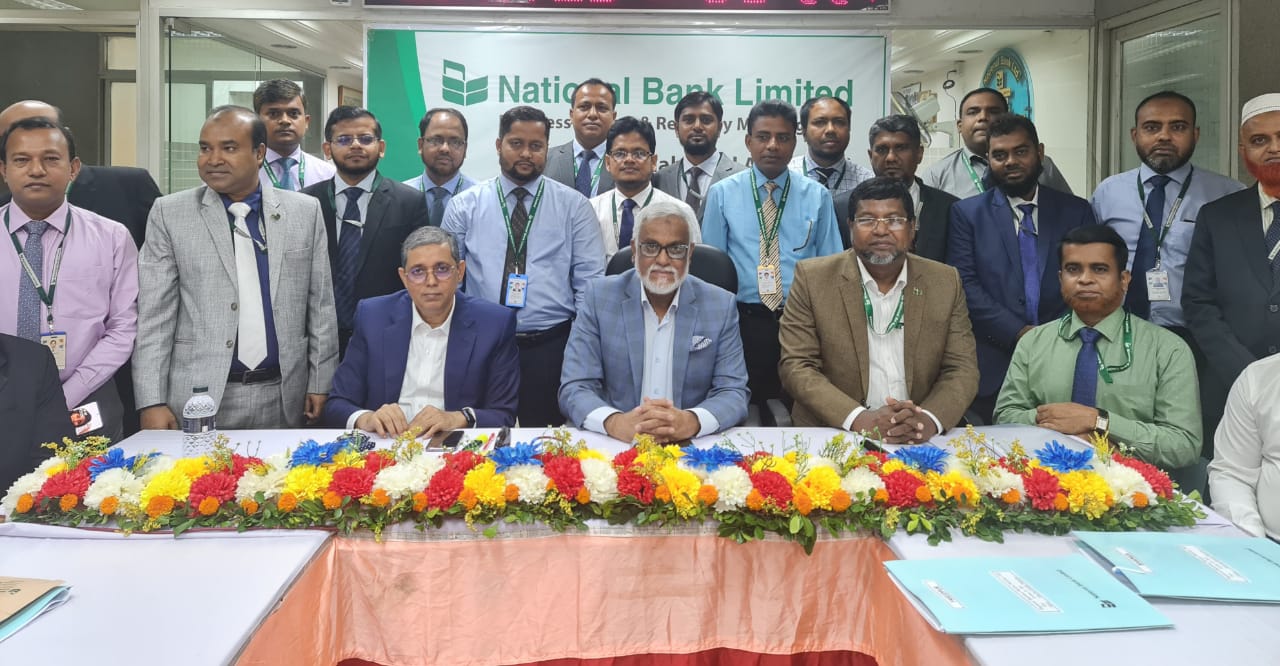 ন্যাশনাল ব্যাংক লিমিটেড এর খুলনা অঞ্চলের শাখা ব্যবস্থাপকদের সাথে ব্যবসায় পর্যালোচনা ও ঋণ আদায় সভা আজ ০৯/১০/২০২১ তারিখে ব্যাংকের যশোর শাখায় অনুষ্ঠিত হয়েছে। ব্যাংকের ব্যবস্থাপনা পরিচালক ও প্রধান নির্বাহী কর্মকর্তা জনাব শাহ্ সৈয়দ আব্দুল বারী সভাটি পরিচালনা করেন। এসময় তিনি ব্যাংকের ২০২১ সালের লক্ষ্যমাত্রা অর্জন, ব্যবসার সম্প্রসারণ, গ্রাহকসেবার মানোন্নয়ন, শ্রেণীকৃত ঋণ আদায়ে কৌশলগত পদক্ষেপ গ্রহণসহ অন্যান্য বিভিন্ন বিষয়ে আলোকপাত ও দিক নির্দেশনা প্রদান করেন। উক্ত সভা শেষে মহান স্বাধীনতা যুদ্ধের অন্যতম সংগঠক এবং ব্যাংকের প্রয়াত চেয়ারম্যান বীর মুক্তিযোদ্ধা জয়নুল হক সিকদারের বিদেহী আত্মার মাগফেরাত কামনা করে বিশেষ দোয়া করা হয়।