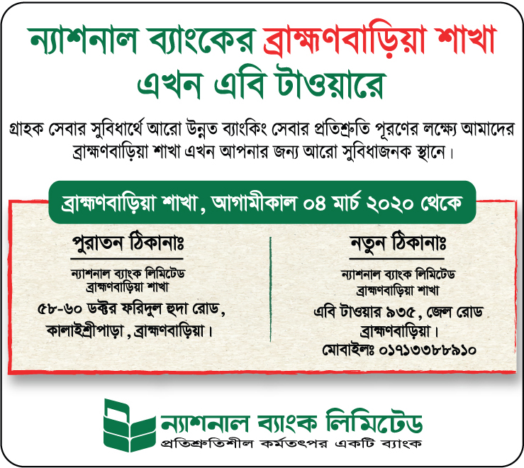 Our Brahmanbaria Branch going to be shifted Tomorrow.