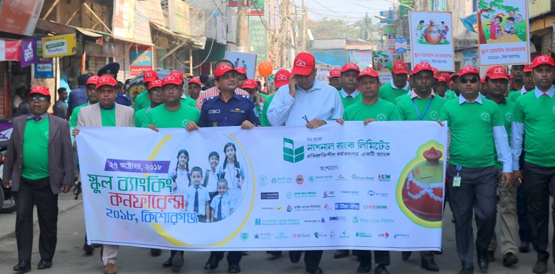 With a view to grow savings mentality of the students of school level through opening bank account, a School Banking Conference-2018 was held at Kishorganj Saturday. At the initiative of Bangladesh Bank, National Bank was the lead bank of the conference. A rally and a discussion session were held regarding the conference. The discussion meeting was held at local community center in the town on Saturday morning in presence of a large number of bankers, students and other stakeholders. The discussion meeting was chaired by Munshi Abu Zakaria, SVP & Deputy CAMCLO of NBL. Md. Sarowar Morshed Chowdhury, Deputy Commissioner of Kishoregonj attended the event as a Chief Guest. Md. Mashrukur Rahman Khaled (BPM), Police Super of Kishoregonj, Khandaker Abdul Quaiyum, DGM of Bangladesh Bank, Mymensingh Office, A S M Bulbul, AMD of NBL, Md. Mostafizur Rahman, District Education Officer and Md. Sajjad Hossion, District Primary Education Officer were present at the event as special guests.