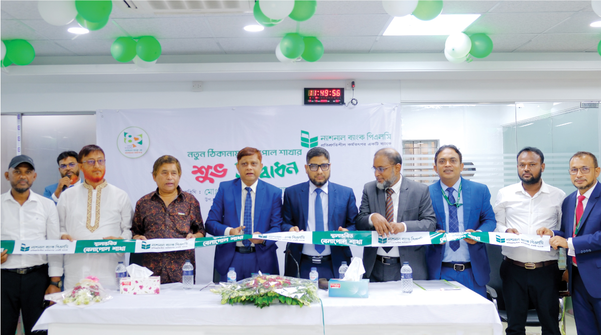 The relocated Benapole Branch of National Bank was inaugurated at a new address. On 3 August 2025, Mr. Md. Meshkat-ul-Anwar Khan, Deputy Managing Director-Incharge of the bank, was present as the chief guest at the opening ceremony. At the time, also present were Mr. Kazi Mahmud Hossain, Regional Manager (Khulna) & SVP of National Bank; Mr. Md. Zahid Hasan, Manager of the Benapole Branch; along with branch officials, prominent local businesspersons, and other distinguished guests. Speakers at the event expressed optimism that the relocation will enhance the quality and range of services offered to customers. New Address of Benapole Branch: Nur Shopping Complex, Holding No. 570/1 (2nd Floor), Benapole Bazar, Benapole, Sharsha, Jashore.